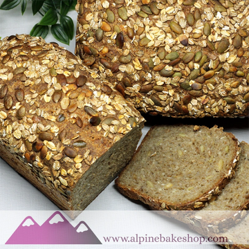 Ancient Grain Emmer Multigrain Bread - This is an artisan multigrain bread with a moist crumb. It is made with freshly ground Emmer flour and a mix of whole spelt and red wheat flours. Emmer (also known as Farro) is an ancient grain and has a rich, slightly nutty flavor. It is also considered high in protein and minerals compared to other grains and a good source of fiber. Together with multigrain flakes, sunflower seeds and pumpkin kernels makes this a healthy, aromatic and delicious bread choi