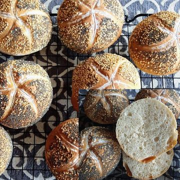 German rolls. With their thin crust and fluffy inside they are perfect with jam as well as hearty spreads or cold cuts and cheese. This roll is really versatile. Available plain, with poppy seeds or sesame seeds.