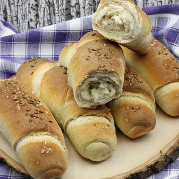 Kaiser rolls - the classic! With it's star shaped top, thin crust and fluffy inside this roll has it's origin in Austria. It is an all time favorite and a very versatile roll. Available plain, with seeds or carraway/salt mix.