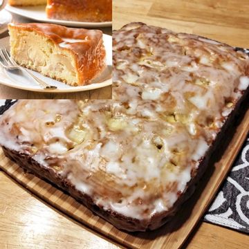 French Apple Cake. Layers of juicy apples between moist vanilla cake. Topped with a thin spread of apricot jam and finished off with a sugar glaze.